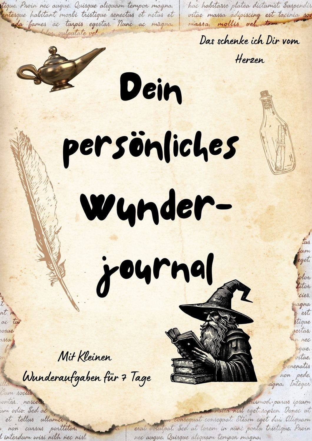 „Entdecke täglich die kleinen Wunder in deinem Leben – mit deinem Wunderjournal, das dir hilft, achtsam und inspiriert durch den Tag zu gehen. Jeder Tag bietet magische Momente, die oft im Alltag übersehen werden. Dein Wunderjournal ist der perfekte Begleiter, um diese magischen Erlebnisse festzuhalten und bewusst wahrzunehmen. Es wird dir helfen, dein Staunen und deine Achtsamkeit zu vertiefen. Hol dir dein kostenloses Wunderjournal und beginne noch heute, die Wunder um dich herum zu erkennen.